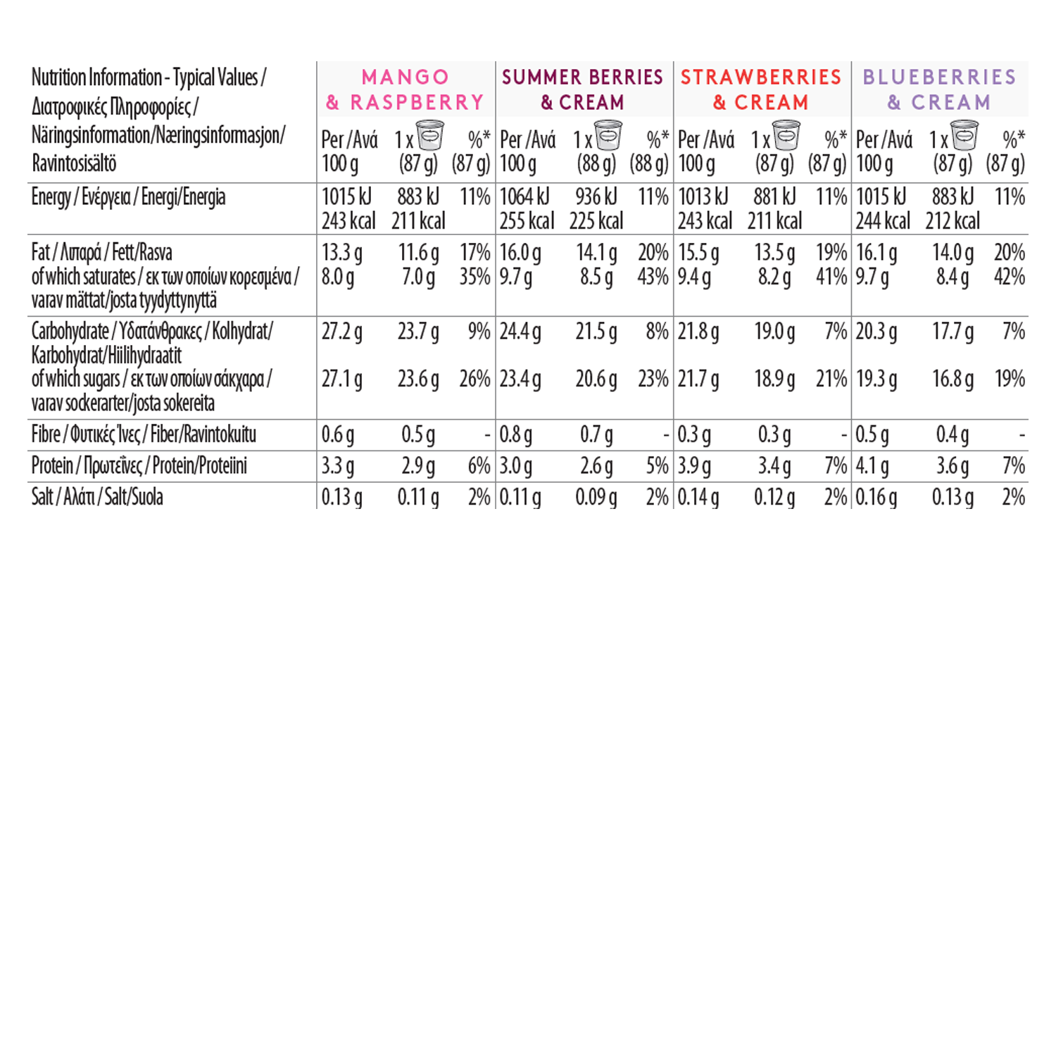 This collection contains four fruity pleasures for your delight: Mango and Raspberry, Summer Berries and Cream, Strawberries and Cream and Blueberries and Cream.